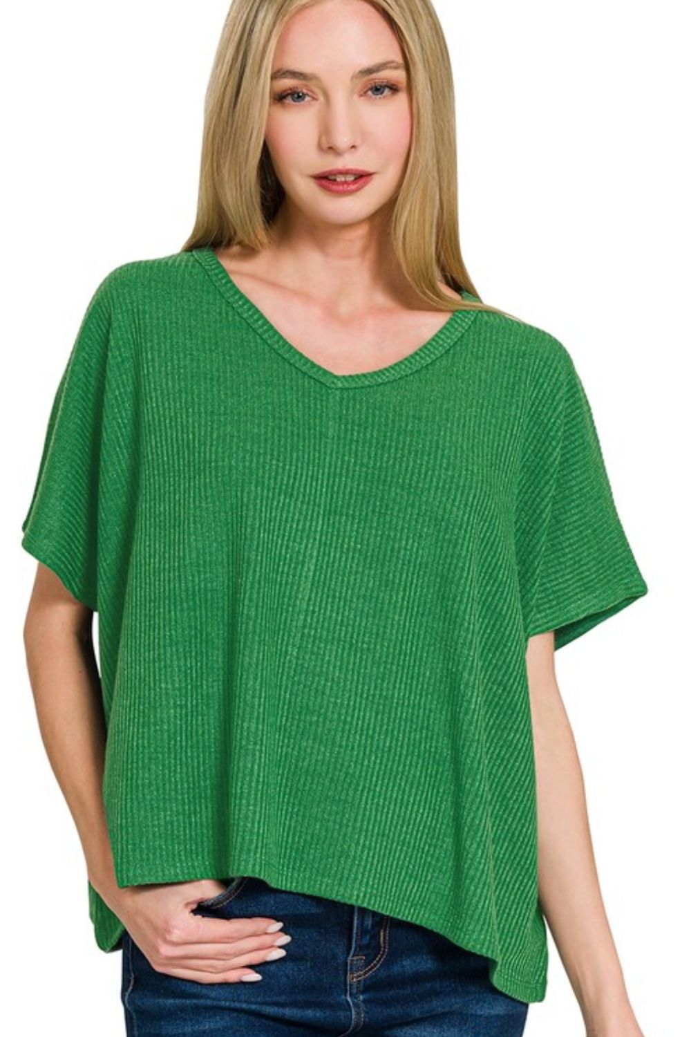 Zenana Ribbed V-Neck Short-Sleeve Knit Top