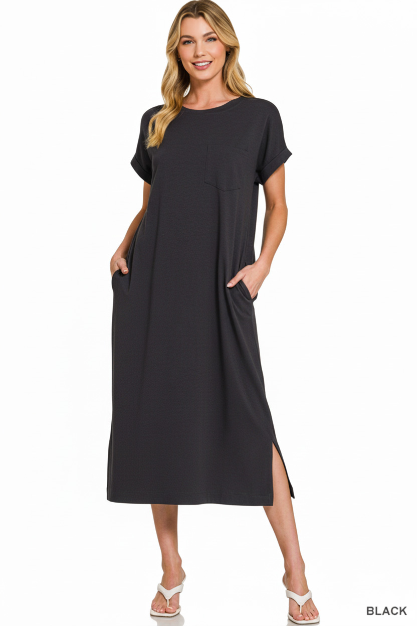 The Round Neck Short Sleeve Midi Dress is a versatile and chic wardrobe staple. With its classic round neckline, this dress offers a timeless and flattering silhouette. The short sleeves add a touch of casual elegance, perfect for both daytime and evening wear. The midi length provides a sophisticated look that can be easily dressed up or down. Made from high-quality materials, this dress ensures both style and comfort for any occasion.