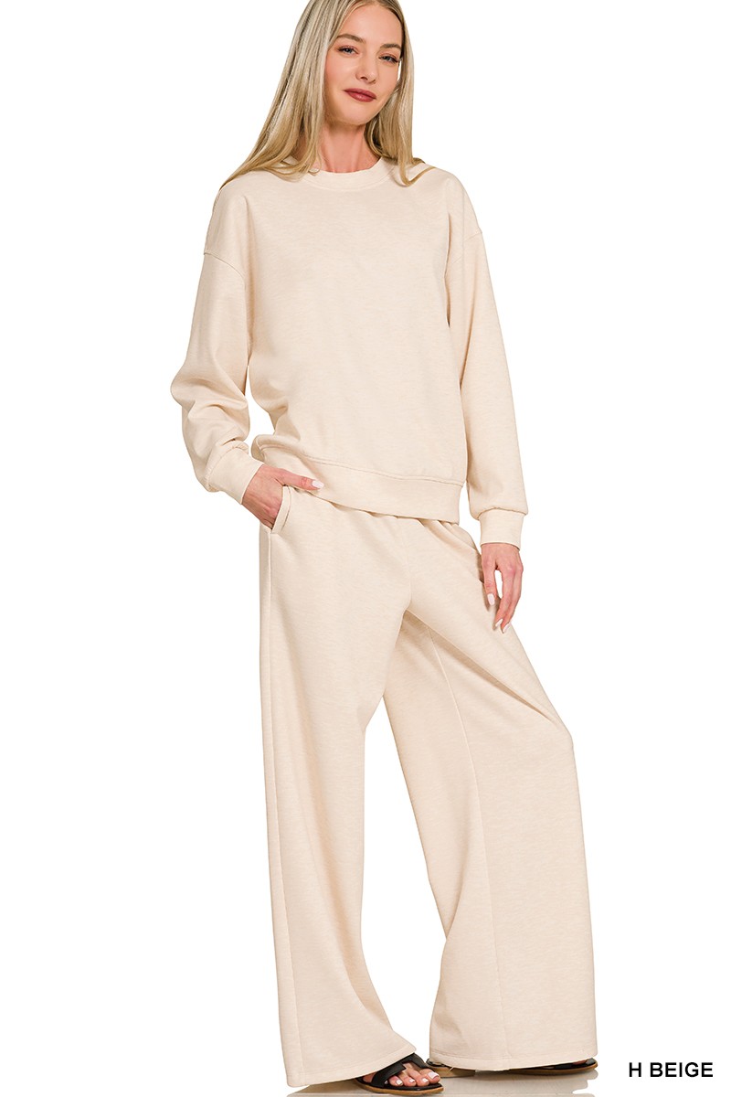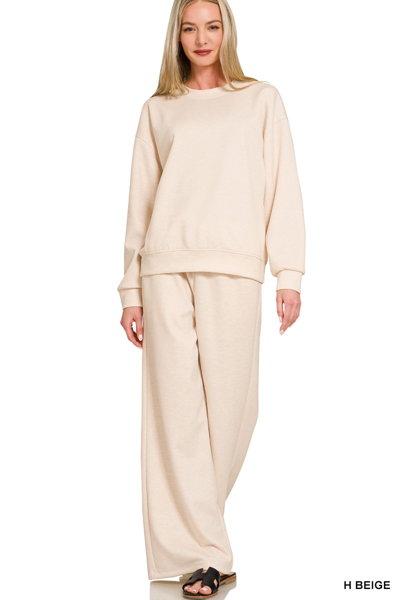 Upgrade your casual wardrobe with this Scuba Crewneck Pullover and Pants Set, crafted for both style and comfort. The crewneck pullover offers a cozy fit for everyday wear, while the matching pants complete the look with a coordinated ensemble. The set features a modern scuba fabric that adds a unique touch to your outfit. Perfect for lounging or casual outings, this set is a versatile addition to your collection. Elevate your cozy chic style with this trendy and comfortable pullover and pants set.