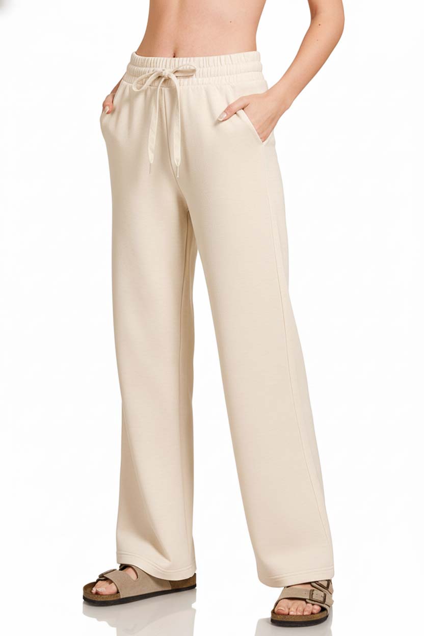 These scuba drawstring wide leg pants offer a stylish and comfortable option for everyday wear. The scuba fabric provides a structured and modern look with a hint of stretch for ease of movement. The drawstring waist allows for a customized fit and adds a touch of casual charm. With wide legs, these pants create a flattering and on-trend silhouette. Perfect for effortlessly elevating your casual or dressy outfits.