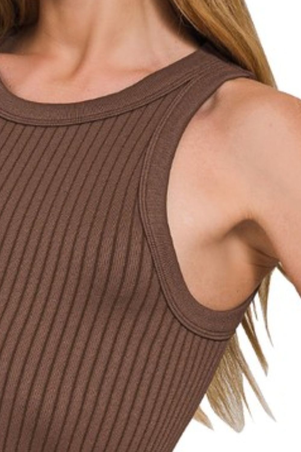The Seamless Ribbed Crop Tank is a versatile and trendy wardrobe staple that offers both comfort and style. Made from a seamless and ribbed fabric, this crop tank provides a flattering and stretchy fit that conforms to your body shape. The ribbed texture adds an interesting detail to the design, while the crop style offers a modern and youthful look. This tank top is perfect for layering or wearing on its own, and the crop length pairs well with high-waisted bottoms such as jeans, shorts, or skirts. Whether you're heading to the gym, running errands, or going out with friends, the Seamless Ribbed Crop Tank is a versatile and chic option that can be dressed up or down for various occasions.