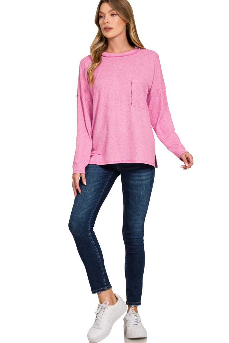 Zenana Soft Melange Hacci Round-Neck Long Sleeve T-Shirt