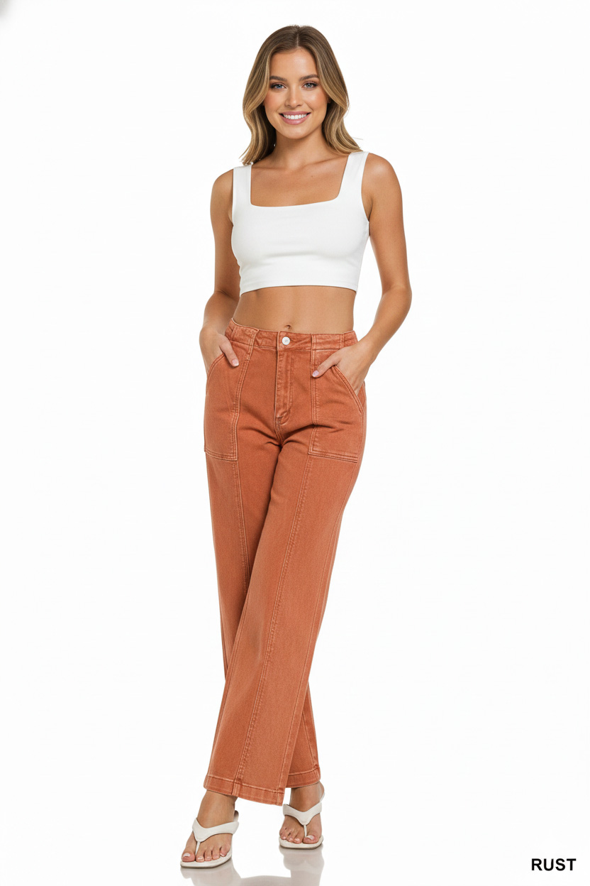 Zenana Straight Leg Utility Pocket Jeans