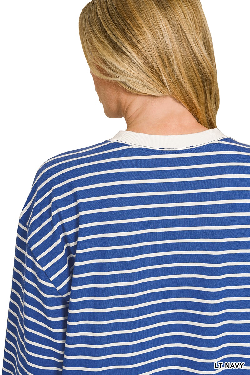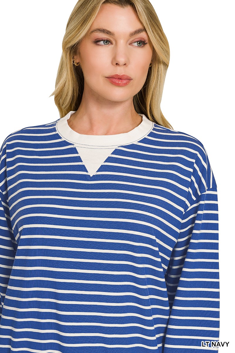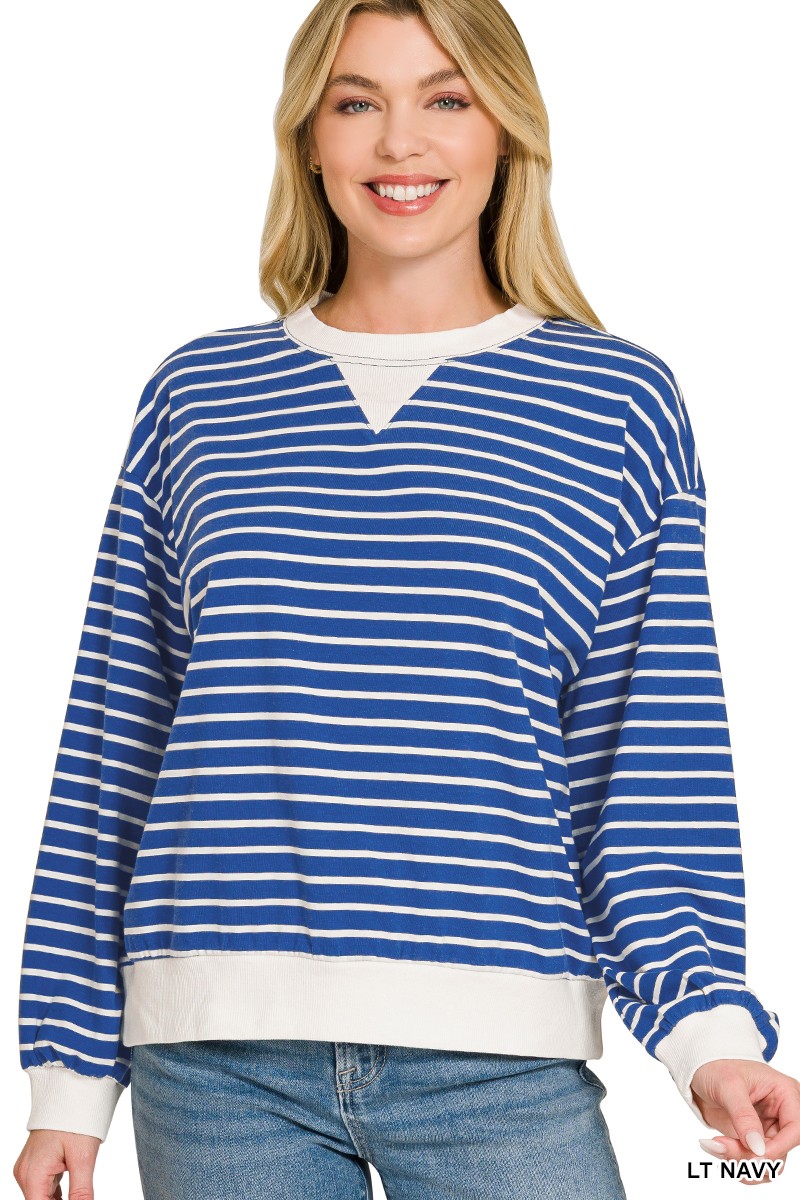 This striped crew neck pullover sweatshirt is a must-have for your casual wardrobe. Made from a soft and cozy blend of cotton and polyester, it offers both comfort and durability. The classic striped design adds a touch of timeless style, while the relaxed fit makes it perfect for layering. The ribbed cuffs and hem provide a snug fit, keeping you warm and comfortable all day long. This sweatshirt is easy to care for and is available in multiple sizes to ensure a perfect fit. Ideal for everyday wear, this sweatshirt combines style and comfort effortlessly.