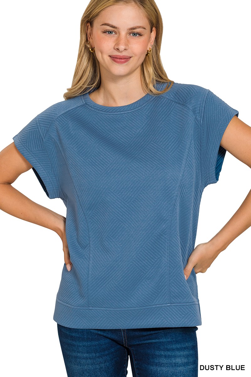 Zenana Textured Knit Jacquard Short Sleeve Top