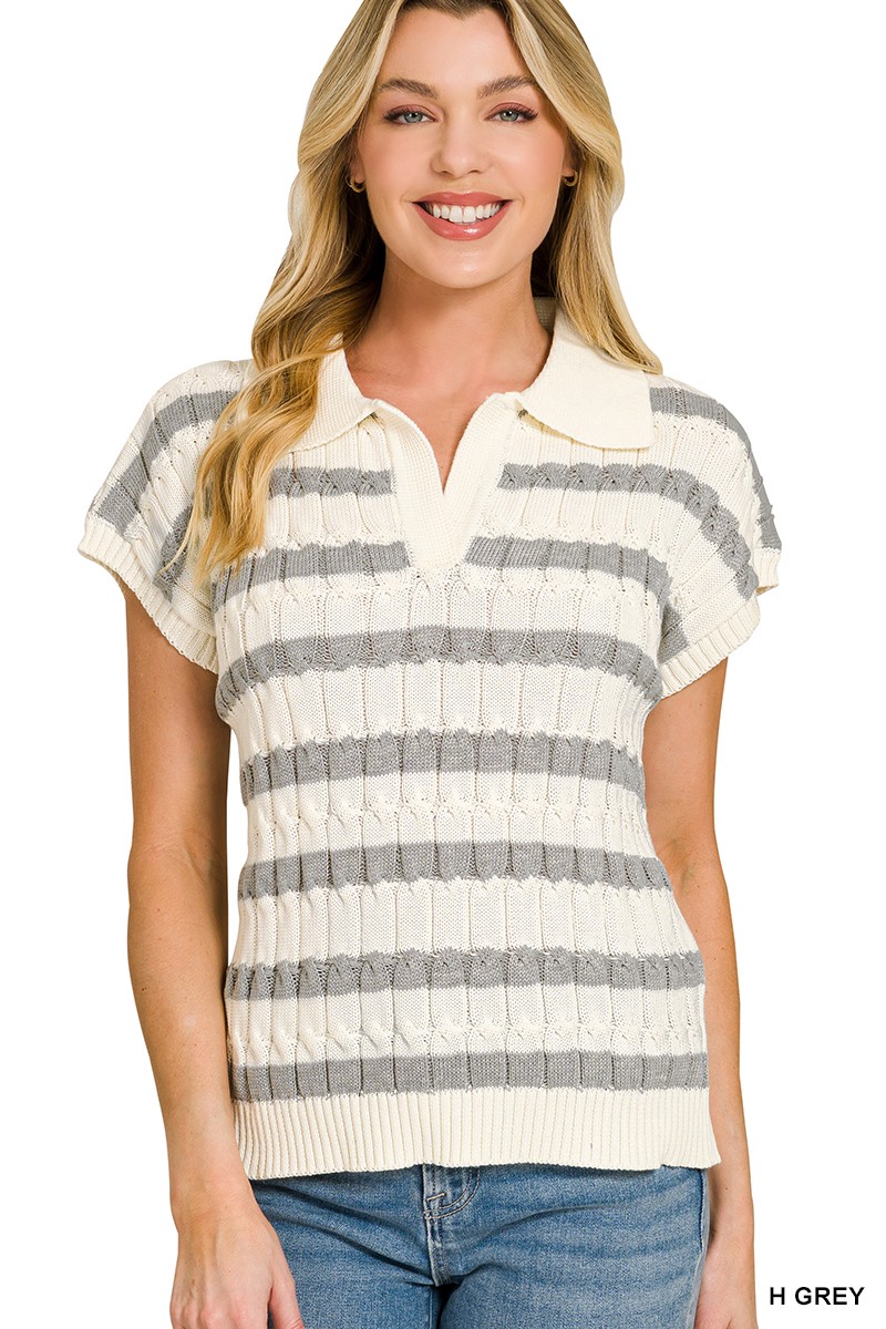 This Textured Stripe Collared Sweater Vest features a subtle textured stripe and neat collared design. Made with soft, comfortable fabric, it’s lightweight and easy to layer, ideal for casual and daily stylish looks.