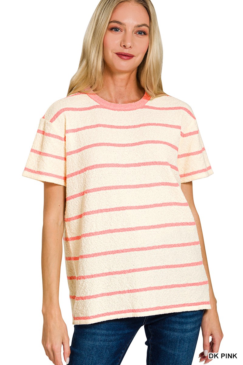 Zenana Textured Striped Crew Neck T-Shirt