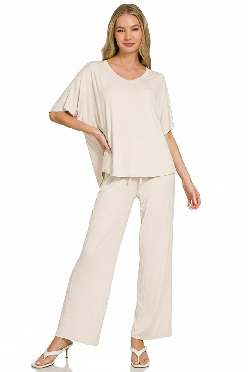Zenana V-Neck Oversized Top & Pants Set