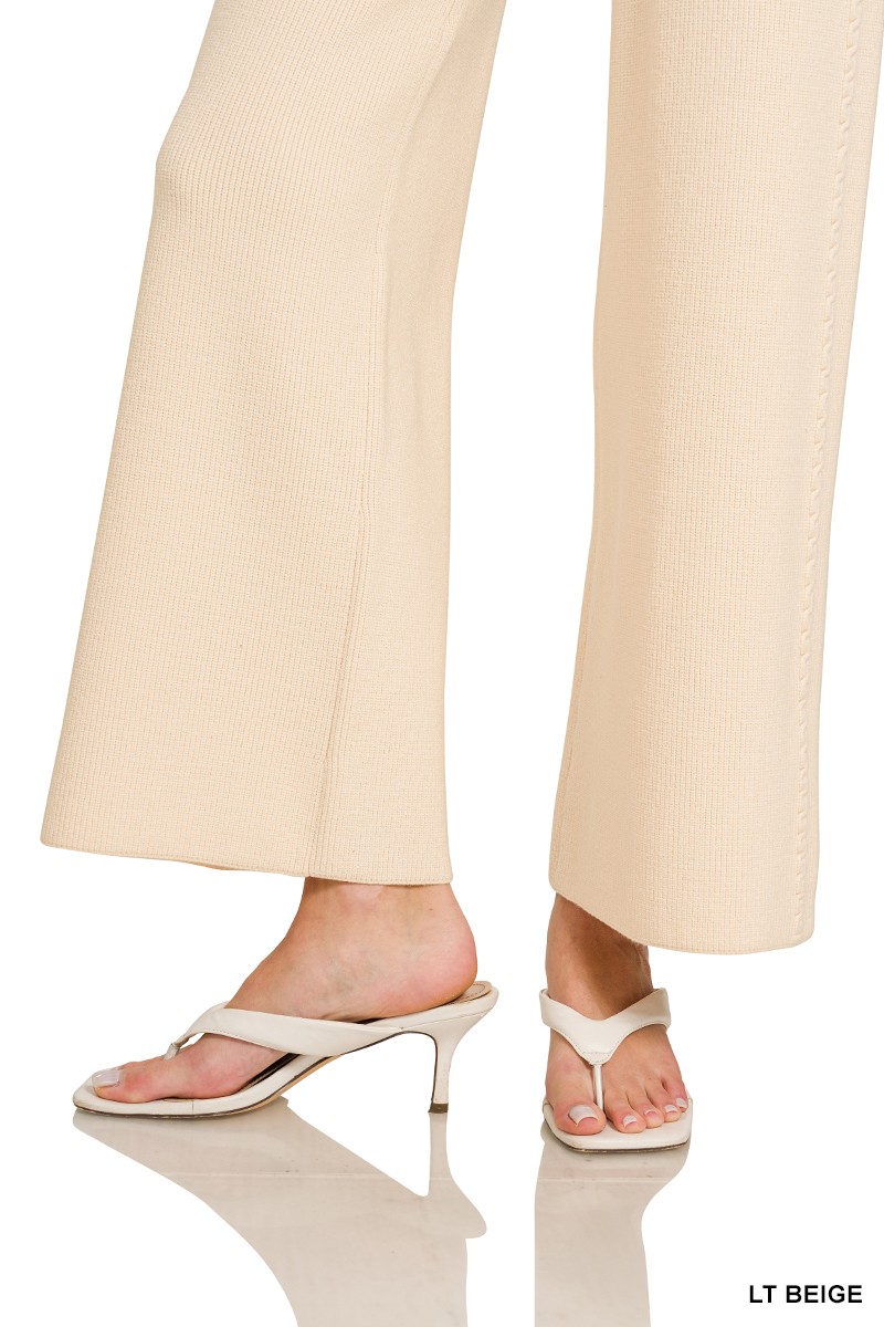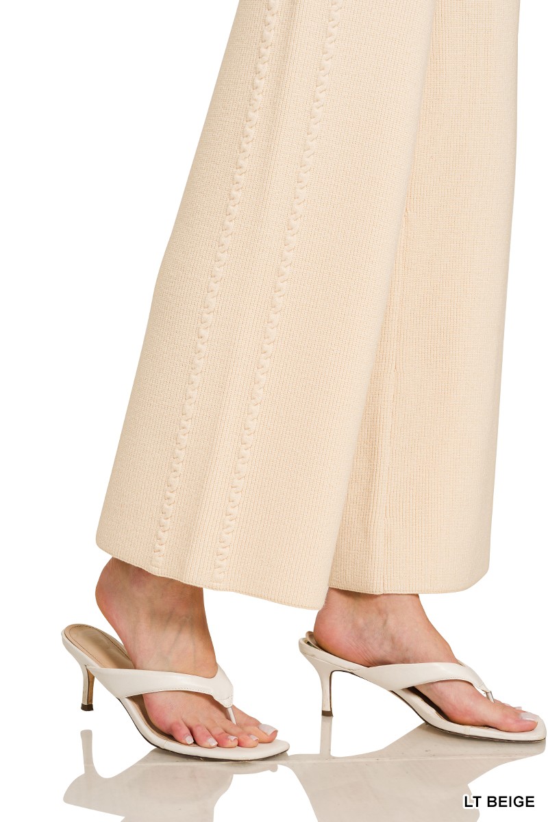 These sweater pants offer a blend of comfort and style, perfect for the modern woman. Crafted from a soft knit material, they provide a relaxed fit and a gentle feel against the skin. The wide-leg design adds a touch of elegance, while the elastic waistband ensures a comfortable and flexible fit. Ideal for both casual outings and relaxed evenings at home, these pants are a versatile addition to any wardrobe. The breathable fabric makes them suitable for year-round wear. Easy to care for, these sweater pants are a practical and fashionable choice.
