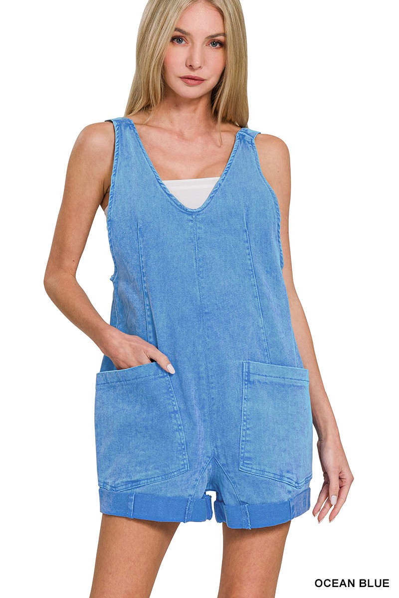 This Washed Denim Romper features a classic washed finish for a vintage, casual appeal. It comes with adjustable shoulder straps for a customized and comfortable fit. Designed with practical side pockets, it combines convenience with everyday style. The relaxed denim silhouette ensures all-day comfort and effortless wear. Perfect for casual outings, it offers a timeless, versatile look that pairs easily with sneakers or sandals.