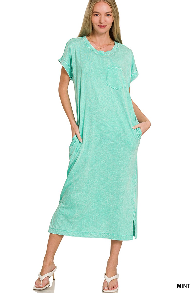Zenana Washed Exposed Seam Short Sleeve T-Shirt Dress