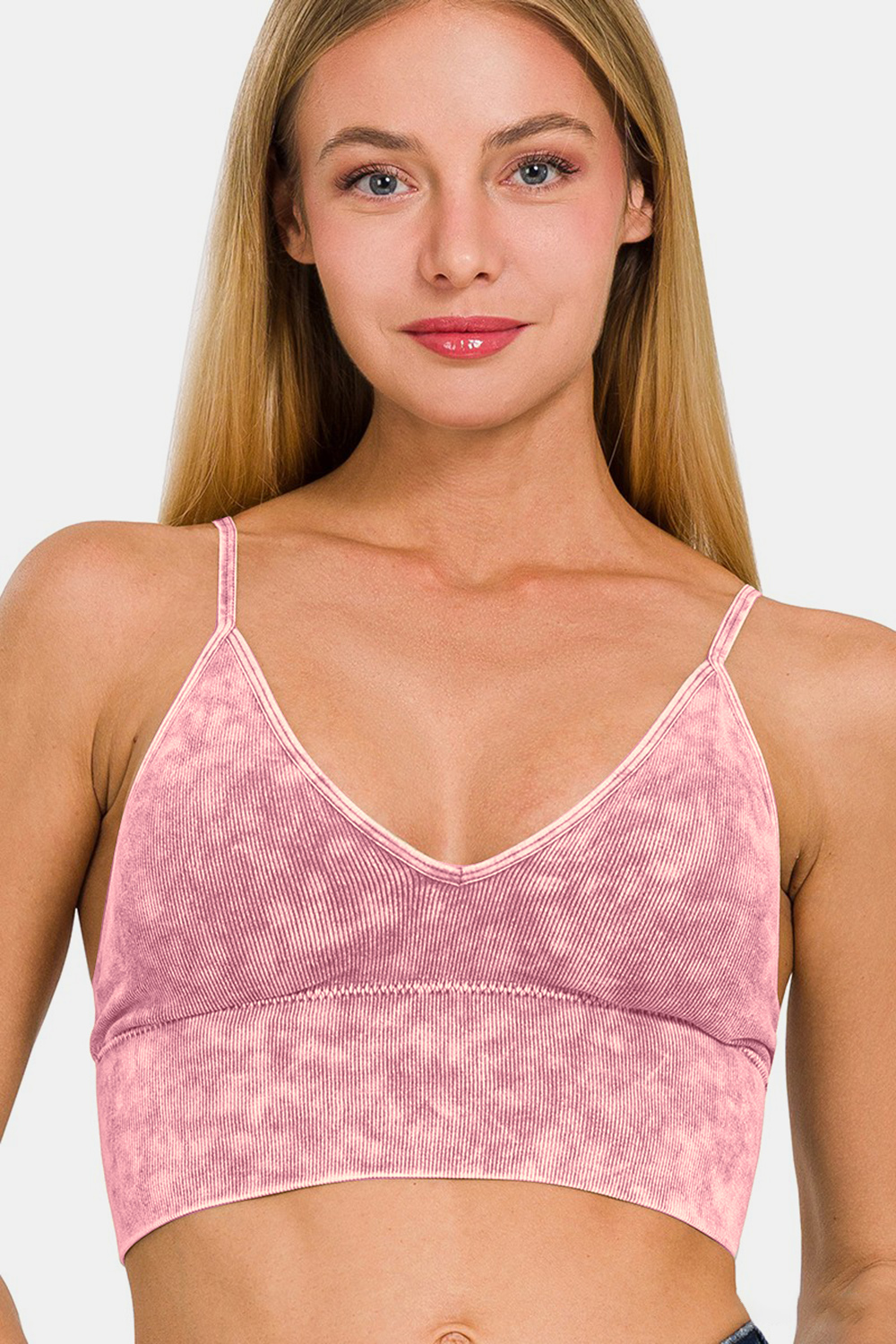 The Washed Ribbed Bra Padded Cami is a comfortable and stylish choice for everyday wear. It features a ribbed design that adds texture and a padded bra for extra support. The washed color gives it a trendy and relaxed look. This cami is versatile and can be worn on its own or layered under a cardigan or jacket. It's perfect for pairing with high-waisted jeans or skirts for a casual and chic outfit. Add this cami to your wardrobe for a fashionable and practical option.