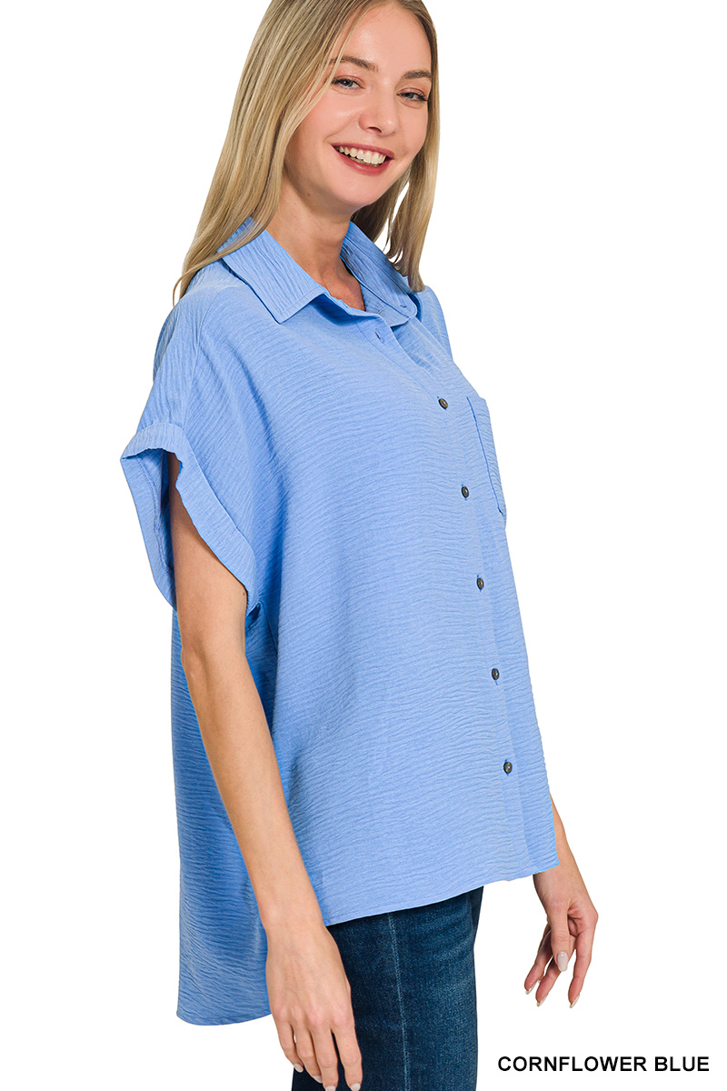 Zenana Woven Airflow Button Down Shirt