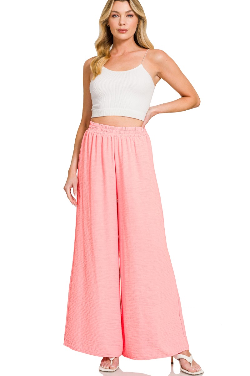 Zenana Woven Airflow Elastic Waistband Pants