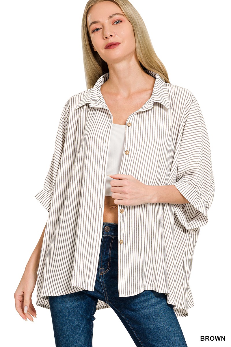 Zenana Woven Stripe Button Down Boxy Shirt