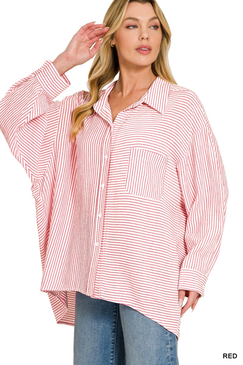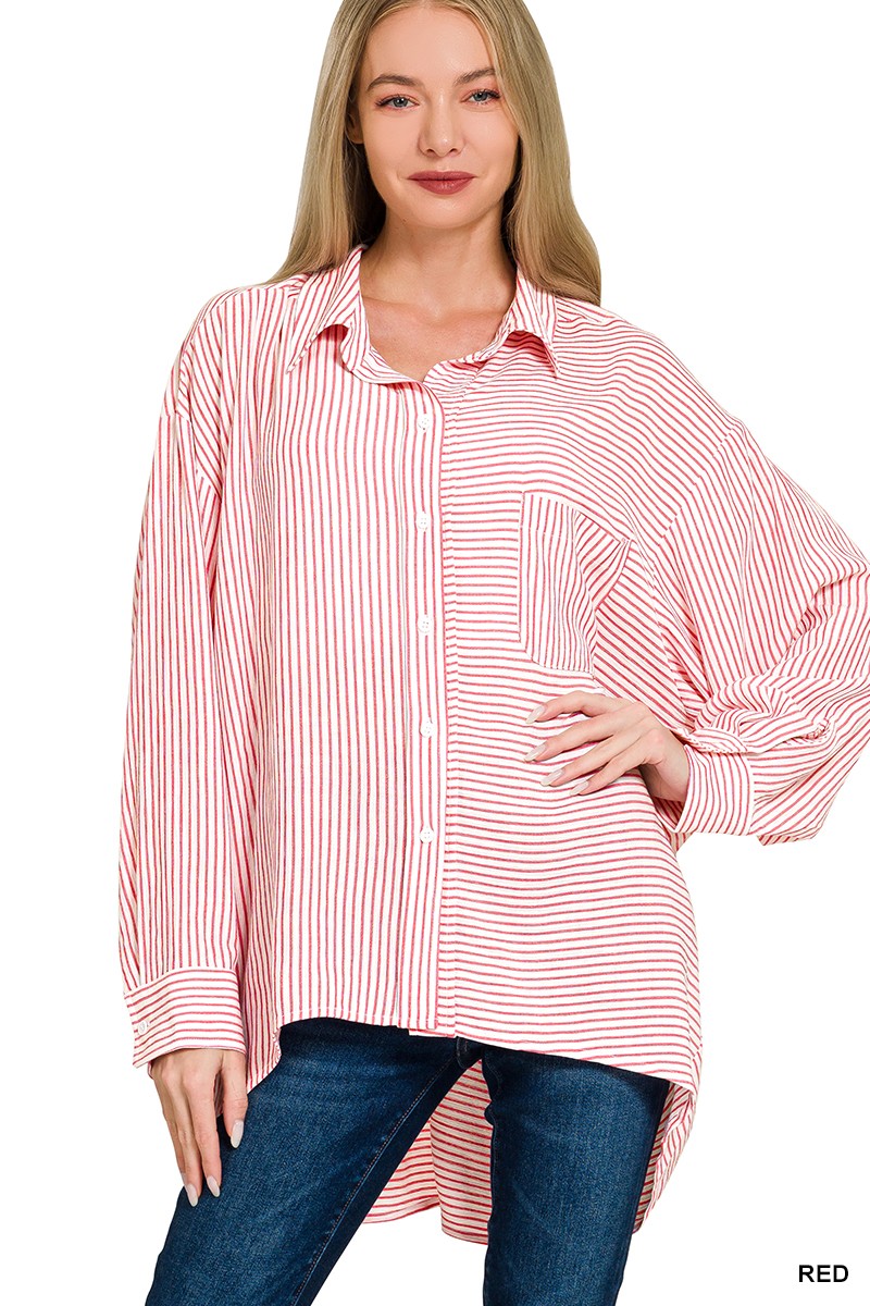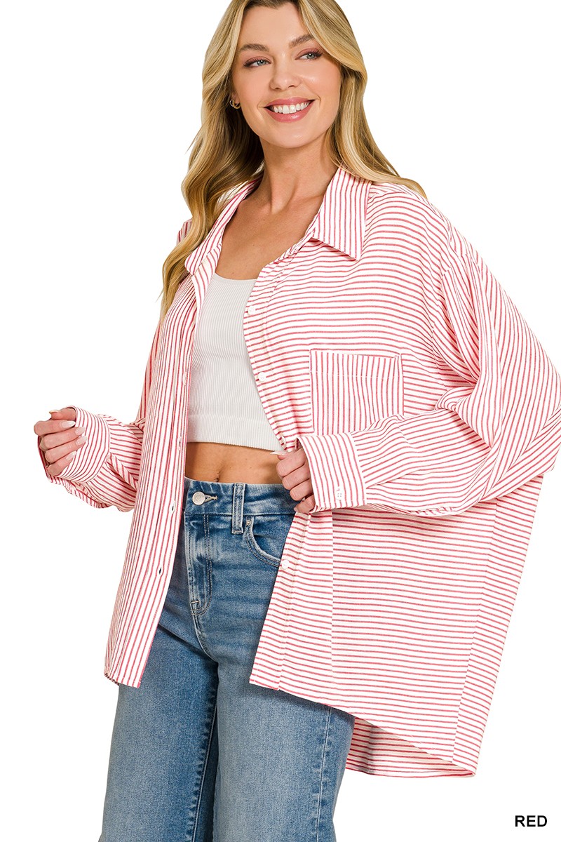 Zenana Woven Stripe Button Down Shirt